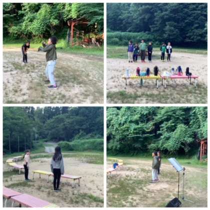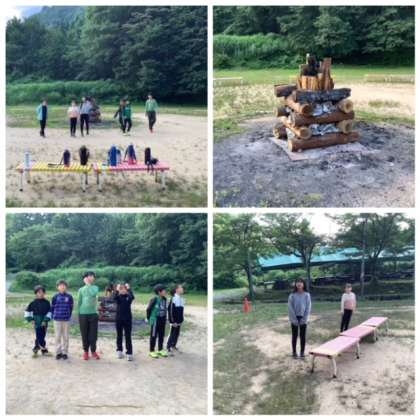 キャンプファイヤー係は、みんなより一足先にファイヤー場へ。