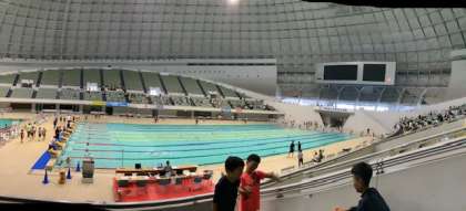 8月3日(木)、ラクタブドーム室内プールにおいて、第56回大阪市児童水泳記録会が開催されました。国際大会も開催される本格的なプールを泳げる滅多とない機会で、児童たちも張り切っています。