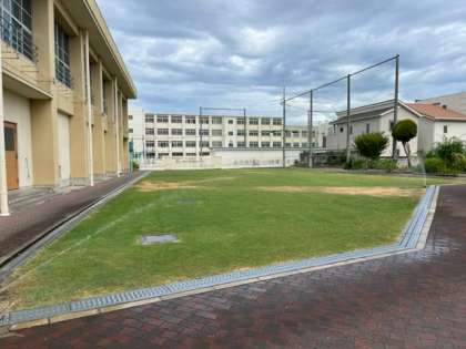 スプリンクラーが届かないところの芝生が少し茶色くなっていますが、雨が降れば復活すると思います。