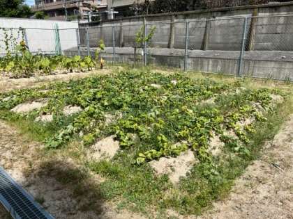 畑には雑草がいっぱい生えてきたので、雑草を抜きながら、ツル返しをしておきました。