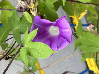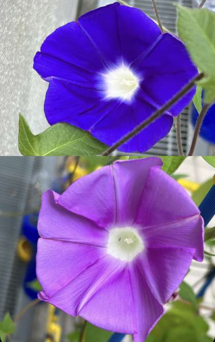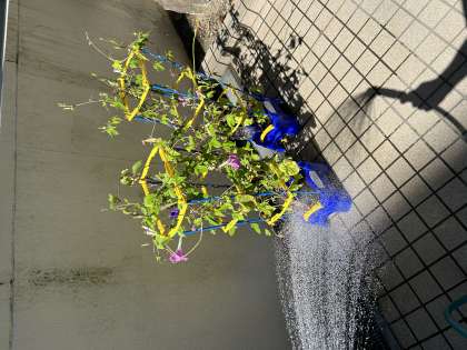 宿題の中にあさがおの観察やたたきぞめがあります。元気よく咲いた花をよーく観察して、たたきぞめをしましょう!学校に置いている先生たちのあさがおも元気に咲いています!