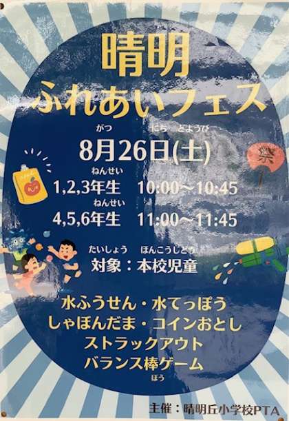 晴明ふれあいフェス(8/26)を開催します!
