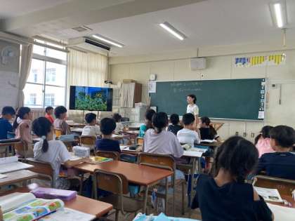 巻き尺を使ったり、自分の身長と比べたりして高さを測りました。また、夏休み前と比べて変化しているところを探して、ノートに記録しました。