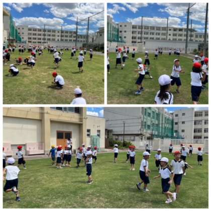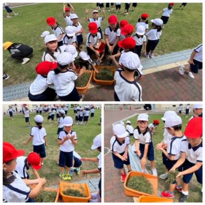 ラジオ体操の後、芝生で自由時間がありましたが、子どもたちは雑草を抜くのに一生懸命でした。てみ2杯分の雑草を抜いてくれました。雑草を抜いてもらって、芝生はとても喜んでいます!