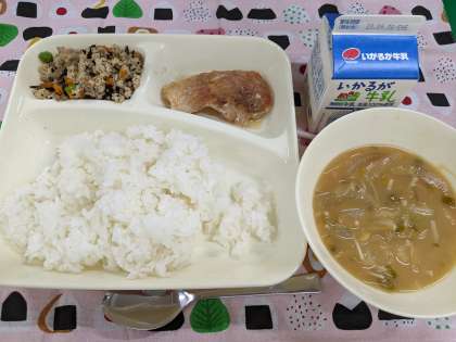 9月4日(月)のこんだては「赤魚のおろしじょうゆかけ、みそ汁、高野どうふのいり煮、ごはん、牛乳」です。