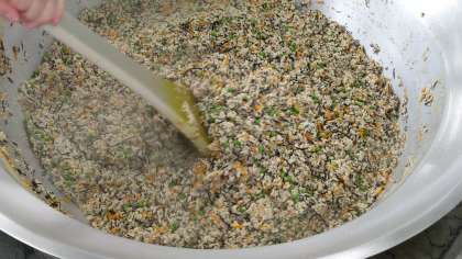 高野どうふのいり煮は、粉末の高野どうふ、豚ひき肉、ひじき、にんじん、グリンピースを使用した煮ものです。ひき肉とだしのうまみを高野どうふに含ませて仕上げます。不足しやすいカルシウム、鉄、食物せんいなどがとれるこんだてです。