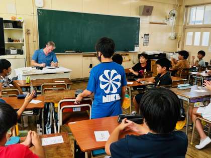 自分の名前のスペル、誕生日、好きな教科を話します。