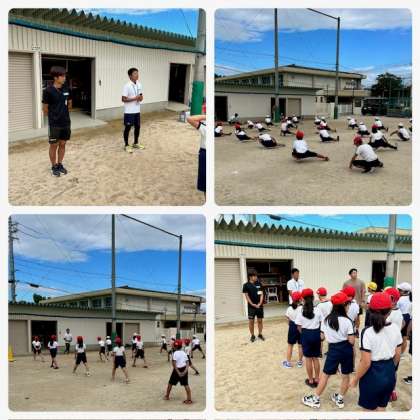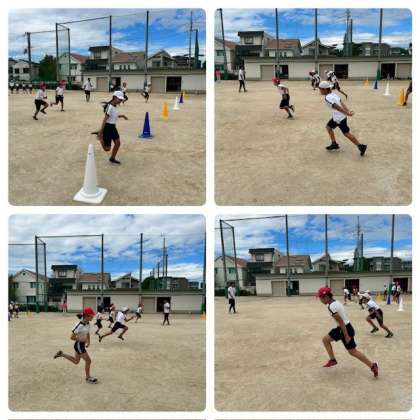 阿倍野区役所が小学生の体力向上のために行われている支援事業の取り組みとして、今日は、5年生の出前授業がありました。運動場での実施でしたが、曇り空で風も涼しく過ごしやすい気候の中で行うことができました。ゲストティーチャーの中川先生と竹内先生に速く走るためのポイントを教わり、短距離走を行いながらポイントができているかを確認しました。一人で走ったり、仲間と競争したりするなど精一杯運動することができました。