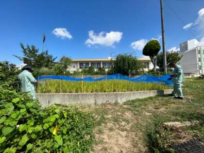 実りの秋! 水田に防鳥ネットを設置しました。 9/19