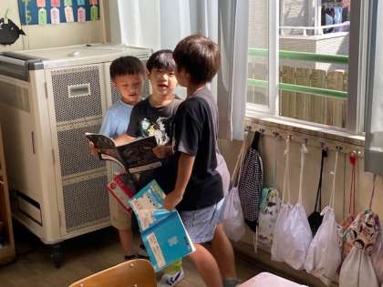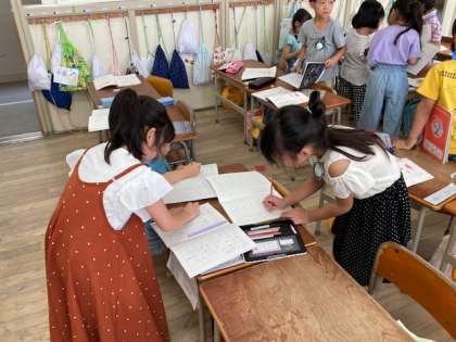 「むにゅむにゅ見つけたで!」「アイスはガリガリ」などと教え合っていました。