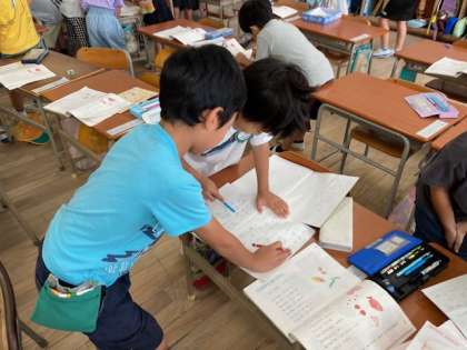 自分で考えた後はクラスを周りいい言葉を聞いてまわりました。