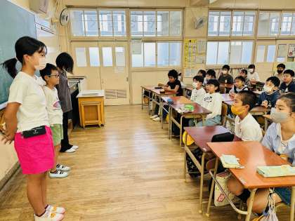 前期の学級代表と運営委員児童が活動を終え、あいさつをしました。
