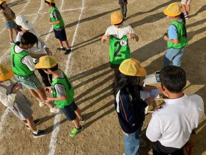 木曜日の15時45分、みんなで元気にラジオ体操。動きのポイントを意識して、体を動かします。