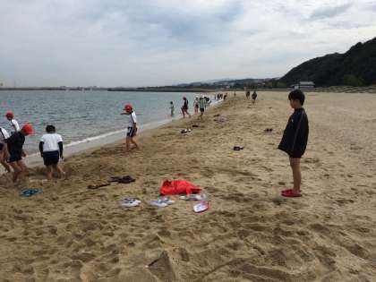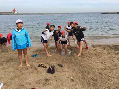 3・4組は、砂浜での活動です。