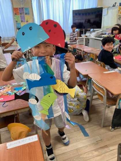 海を波にして魚を泳がせたり、タコのスミにしたり、クラゲの足を表現したりと様々でした。