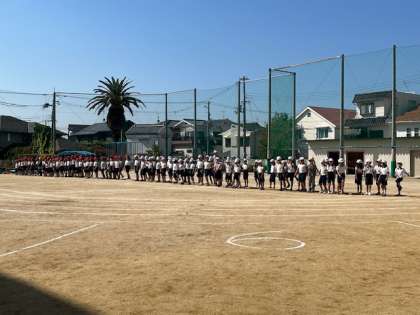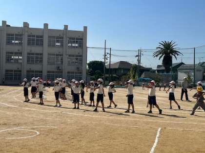 綱引きの退場時に披露するパフォーマンスの練習をしています。