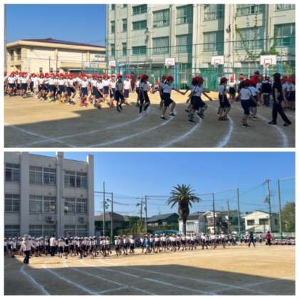 全体練習の締めくくりに、校歌と運動会のうたの練習をしました。