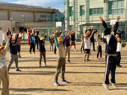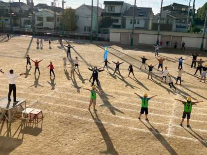 運動会のはじめの体操では、継続して取り組んだ成果を発揮し、ポイントを意識した動きを心がけましょう。