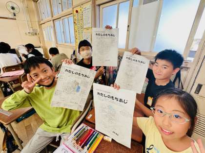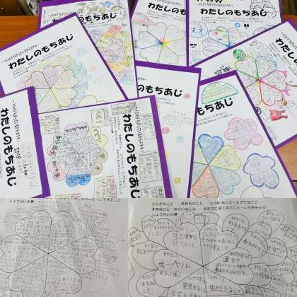子ども達は、自分を表す言葉を思い思いにワークシートに書きこみながら、「自分を漢字一文字で表したら何だろう?」「○○が好きなん?めっちゃ分かるわ〜!」と、友達と笑顔で話していました。