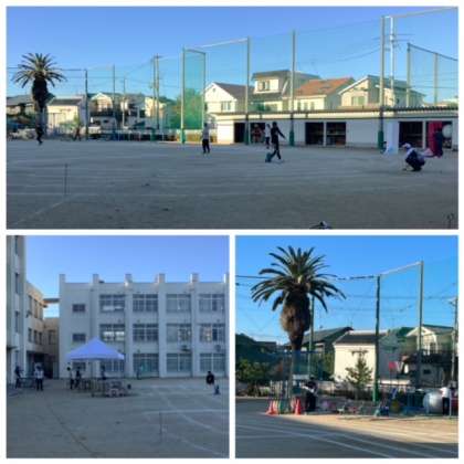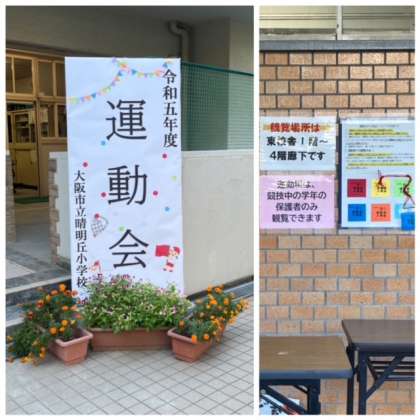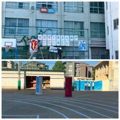 運動会のスローガン、得点板、入退場門、玄関の看板も設置されました。