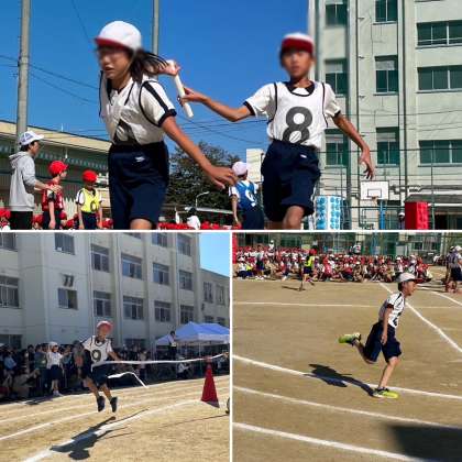 バトンを片手に懸命に走る姿、かっこよかった!!応援する保護者にも力がはいってました!