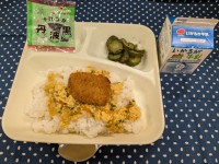 10月24日(火)のこんだては「まぐろのオーロラ煮、スープ、きゅうりとコーンのサラダ、おさつパン、牛乳」です。