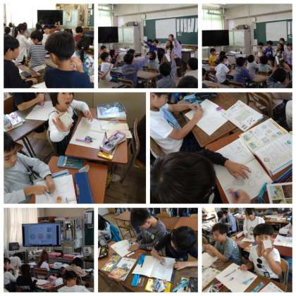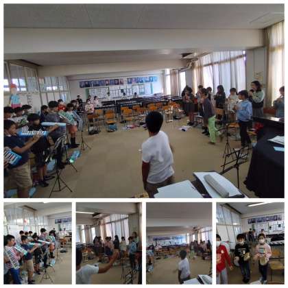 5年生は、音楽で「キリマンジャロ」の合奏を練習していました。自分が担当している楽器を練習した後、みんなで合わせました。指揮者に合わせて歯切れよく演奏していました。