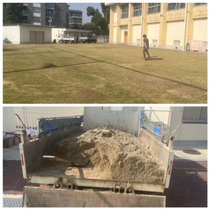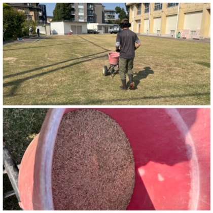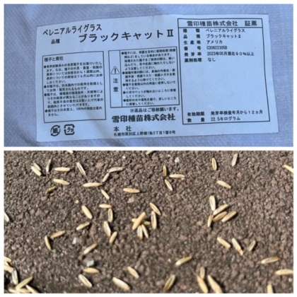 「ペレニアルライグラス」という品種を蒔き、目土を行います。