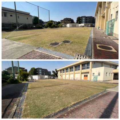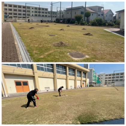 当分の間は、芝生広場への立ち入りは禁止です。小さな芽がでてきたら、大切にしてあげてください。