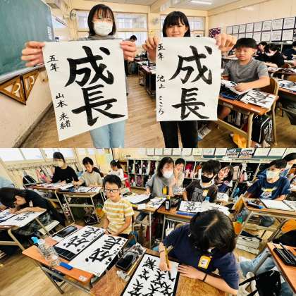 みんなで楽しくバレーボールをしたり、めあてに気を付けて毛筆練習に取り組んだりしました。