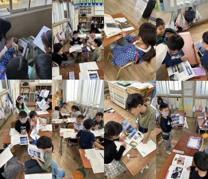 国語科では、「いろいろなふね」の学習が始まりました。一回目の授業では、船のほかにどのような乗り物があるかや、教科書にある船の写真からどのようなことがわかるかをグループで話し合いました。授業の中では、船について学習しますが、授業以外の時間で乗り物に関する本を読む並行読書にも挑戦します!さっそく、本に興味津々です!
