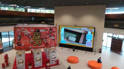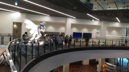 円形ロビー「10plaza」には、372インチの4K 大型高精細LEDビジョン「10vision」が設置されています。吹き抜けの2階には、怪盗キッドが! な、な、なんか、光ってる!