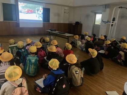 DVDを視聴し、消防士さんの様々なお仕事について学びました。そして、訓練の内容や出動時の様子を見て学習しました。