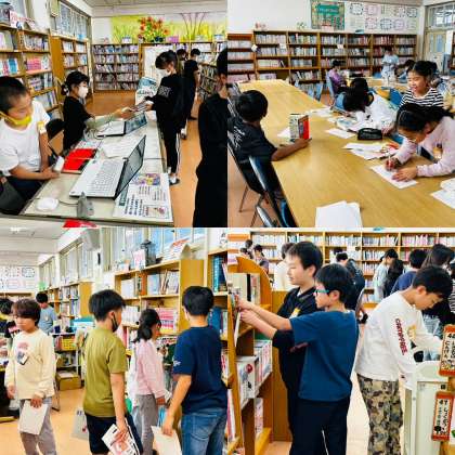 図書委員会が用意してくれた読書ビンゴカードを図書室で選び、自分が借りる本を決めます。
