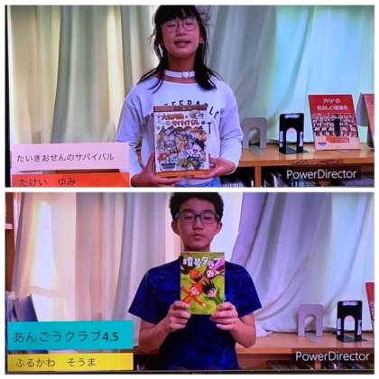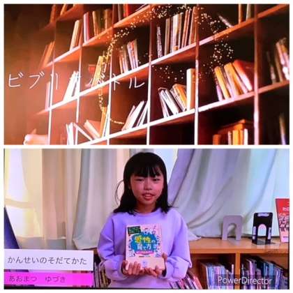 11月8日(水)、今日の児童朝会はテレビ放送でビブリオバトルを行いました。