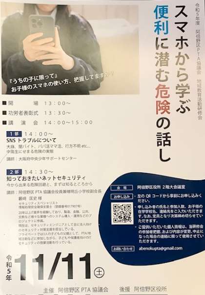 阿倍野区PTA地域教育活動研修会が開催されます(11/11)