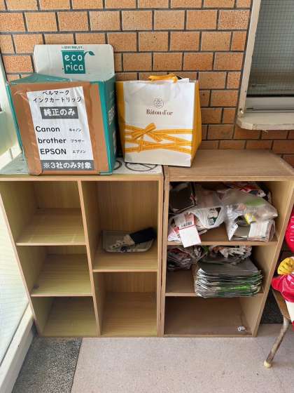 お手間をおかけしますが飲み口がついてあるパックにつきましては取り除いて回収ラックに置いていただく事をお願いします。