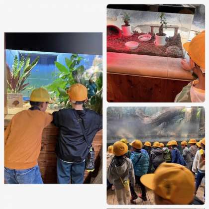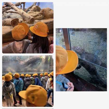まずは、ミシシッピワニやアメリカハコガメなどに出会いました。子ども達はみんな、集中して見ています。