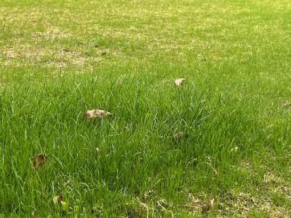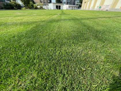 オーバーシード後、西洋芝が順調に成長したので、芝刈りをしました。