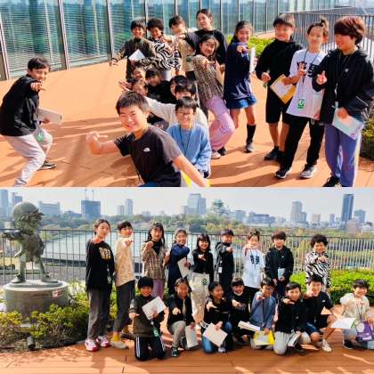 6階では、社会見学者のみ入ることができるテラスで、コナン君と記念撮影をしました。