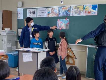 今日の総合では、ALSOKあんしん教室で防災の学習をしました。
