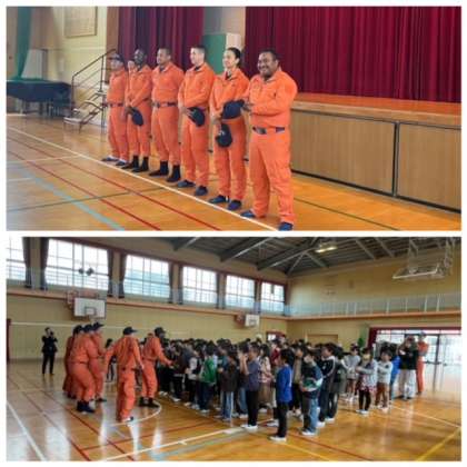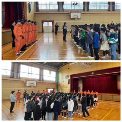 訓練終了後、お礼の気持ちを込めて4年生から歌のプレゼント「もみじ」を歌いました。