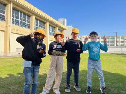 栽培委員の有志が昼休み、冬芝の手入れをしてくれています。