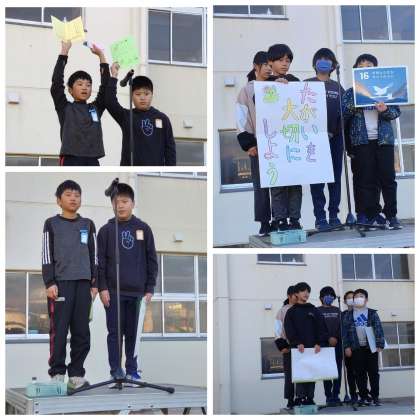 今月のめあては「たがいを大切にしよう」です。先生や友だち、家族等、互いを尊重し大切にしましょう。これはSDGs16番「平和と公正をすべての人に」につながります。