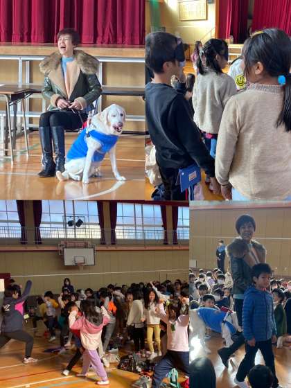 はじめに、盲導犬についてや、視覚障がいについて、たくさんのことを浅井さんに話していただき、子どもたちは、初めて知ることに、興味を膨らませながら、学んでいました。