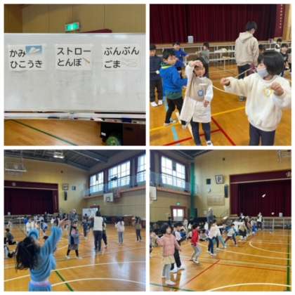 12月5日(火)2〜3時間目、講堂で昔あそび体験をしました。