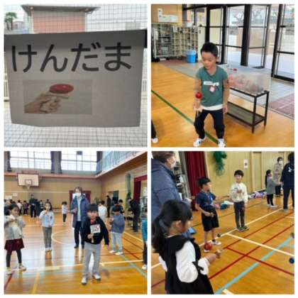 けんだまは、ひざの動きをうまく使いながら、上手に出来ているお友だちをみて、同じようにやってみようと何回も挑戦していました。