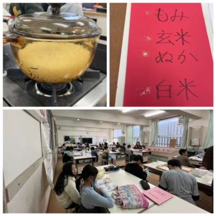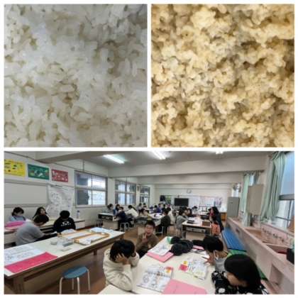 授業のようす(5−1 家庭科)晴明米をいただく 12/7
