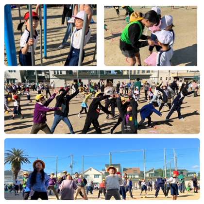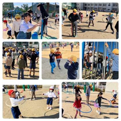 みんなでいい汗をかいて、体力アップを目指します。友達と技を教えあう姿も見られました。
