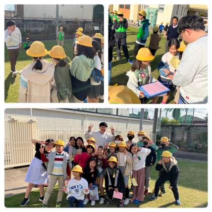 お笑い芸人のタチマチの胡内さんも参加してくださいました。胡内さんは校長先生の逆立ち姿に驚いていました。また、「みんなで身体を動かして楽しいですね!」とおっしゃっていました。